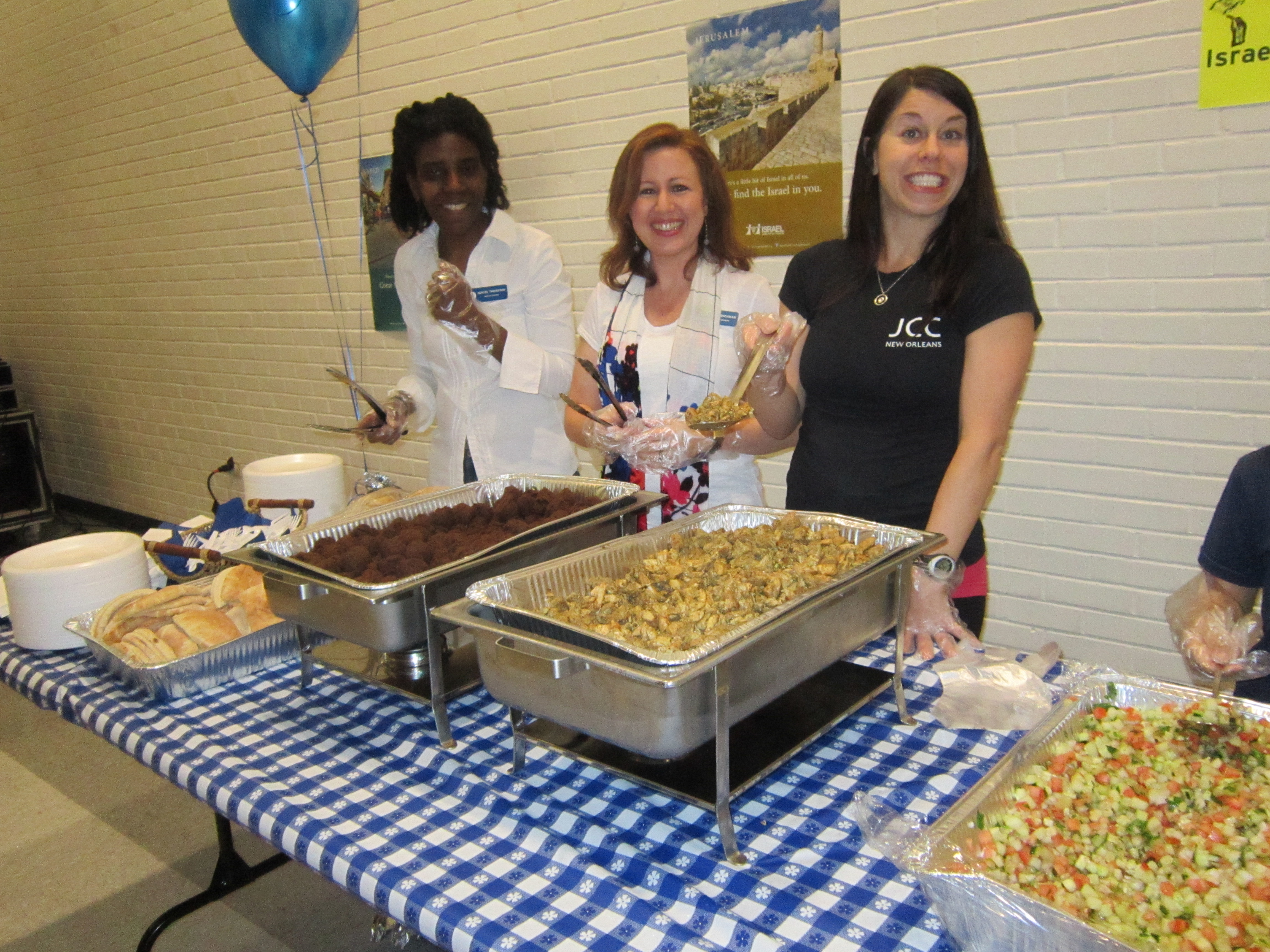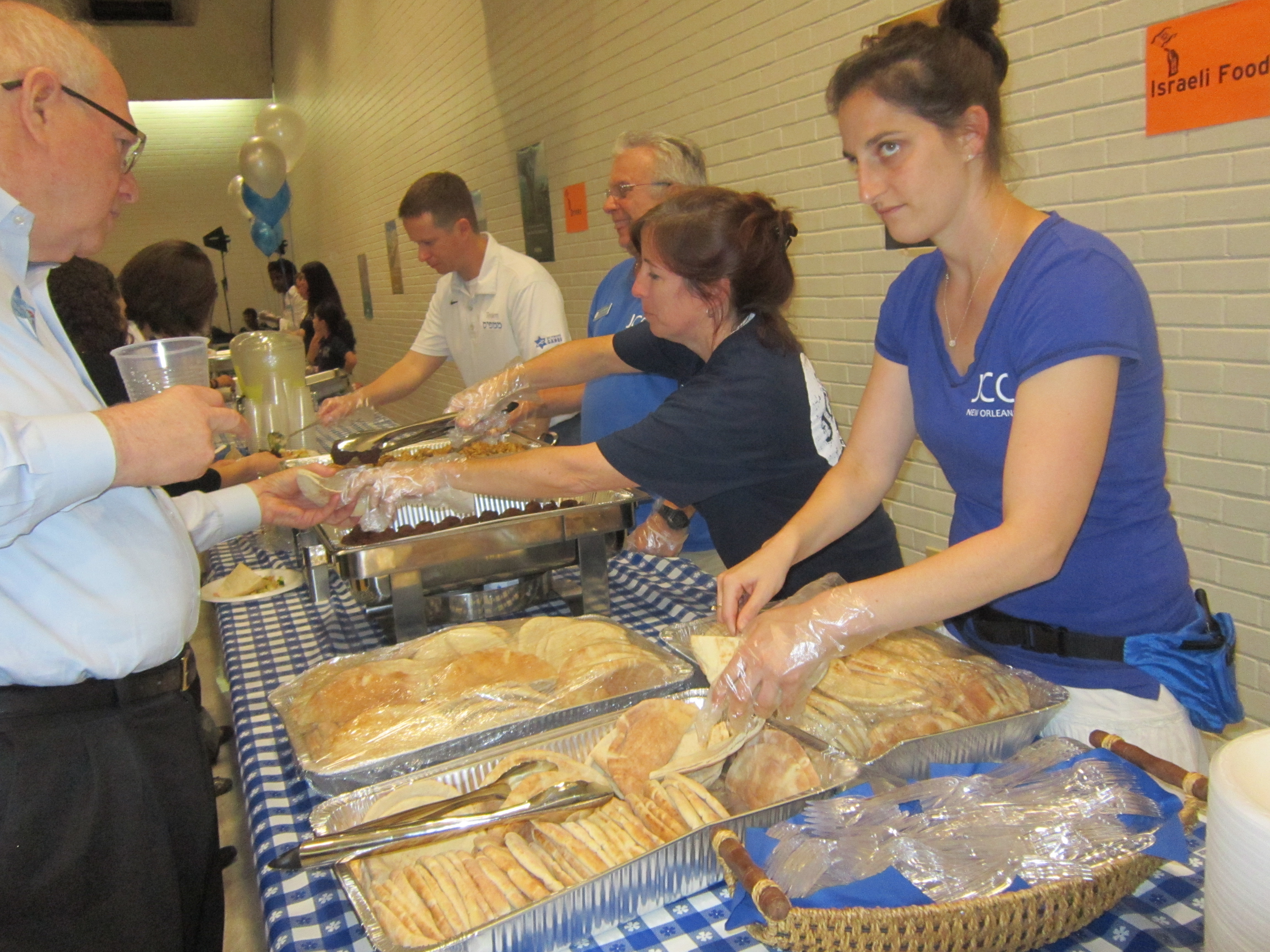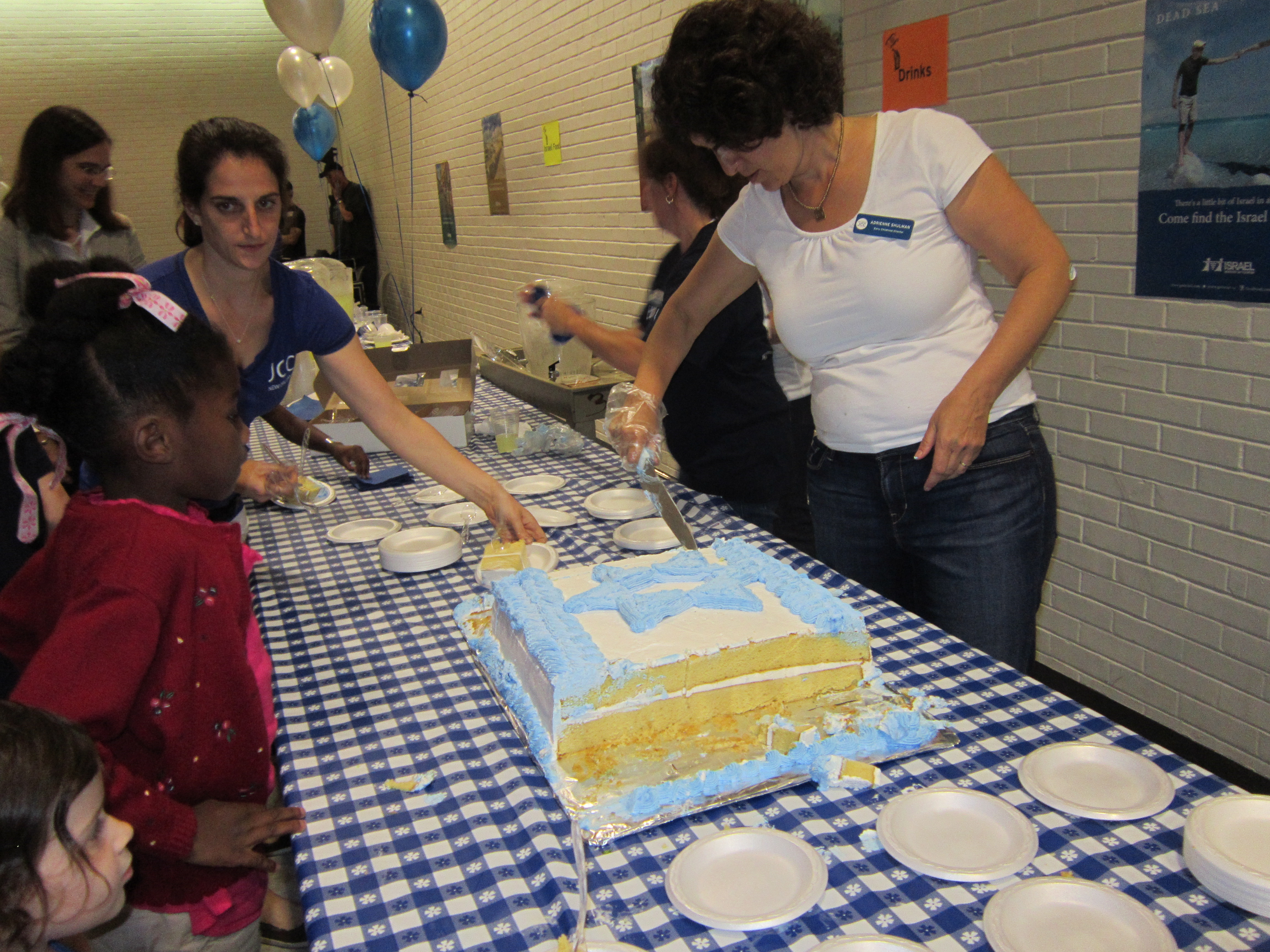 The JCC provided Israeli food consisting of pita bread, falafel balls, salad and tahini for adults and fried chicken fingers and fries for the younger set. A large cake bearing the image of the flag of the State of Israel was also cut and distributed to the crowd.