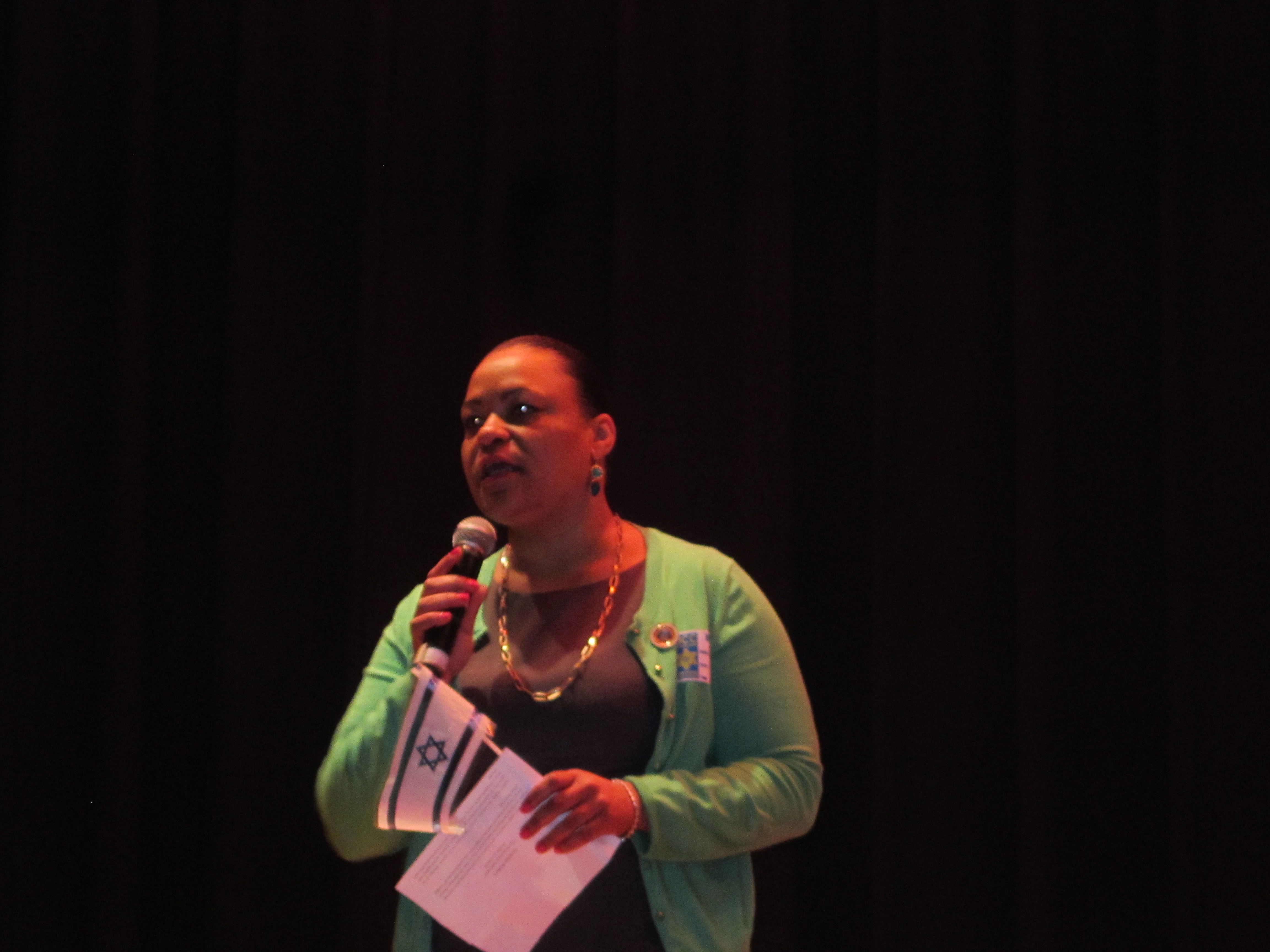 JCC executive director Leslie Fischman welcomed the crowd inside the large auditorium to celebrate the 65th anniversary of the Jewish state. Following the singing of the national anthem of the United States of America, the Tzofim led the singing of Hatikvah, the national anthem of Israel. Fischman then introduced New Orleans City Councilperson Latoya Cantrell, who expressed her thanks for the invitation and her solidarity with the Jewish people and Israel.