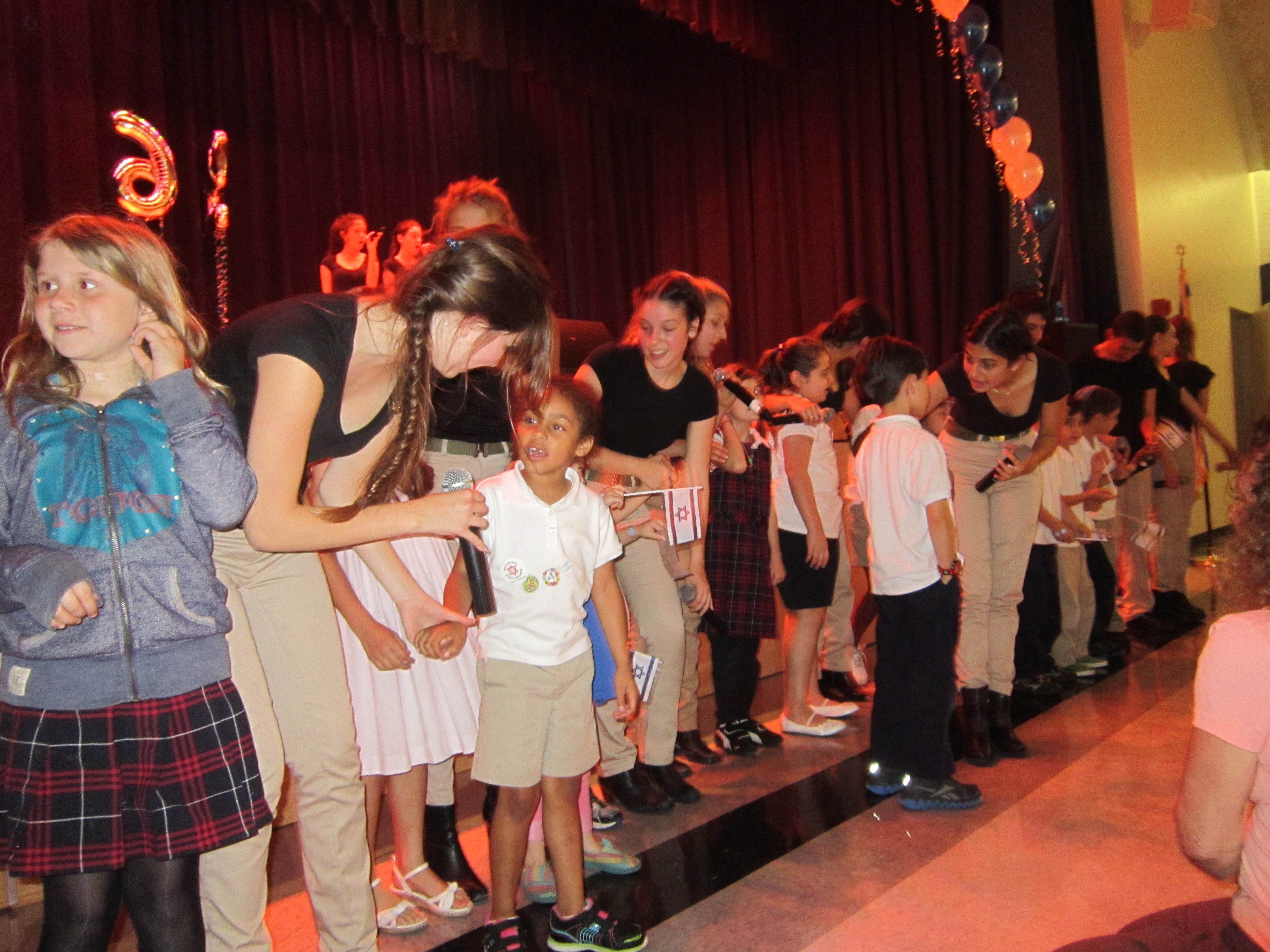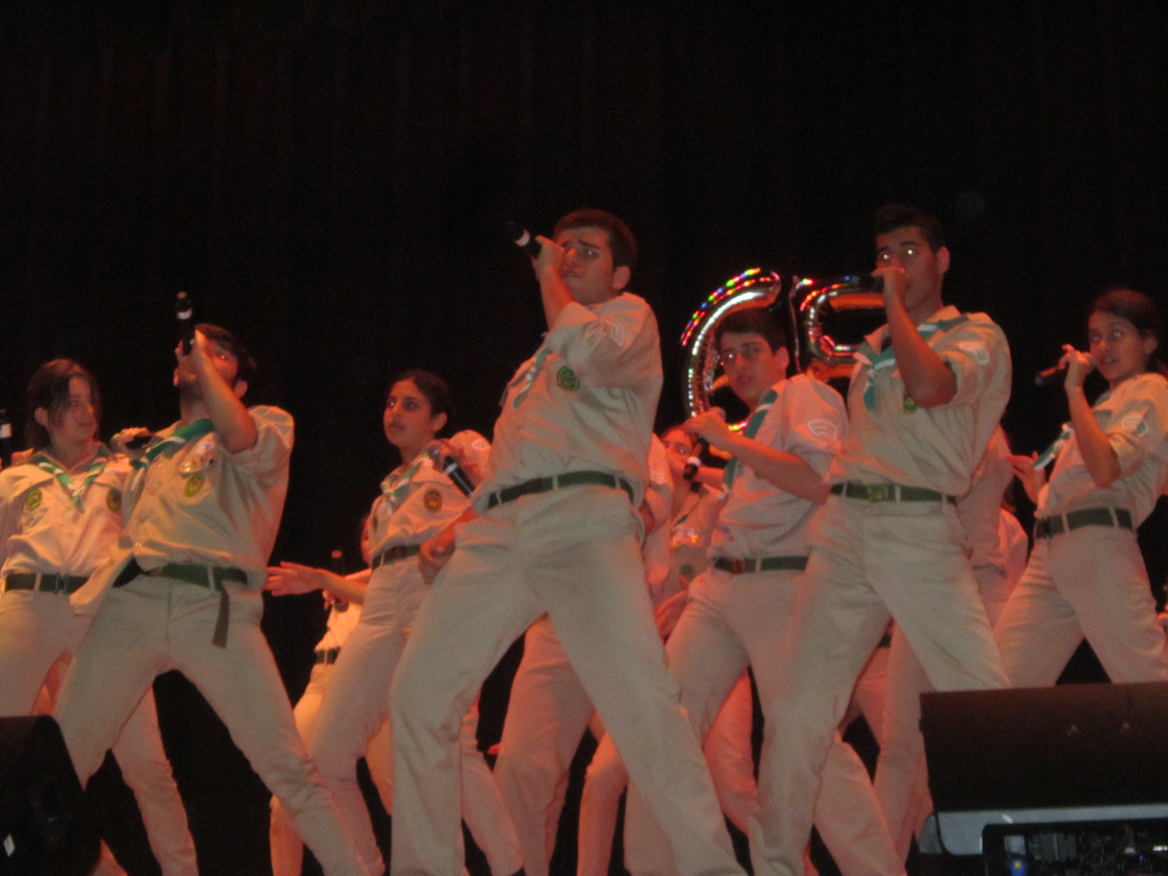 The pace of the recorded music to which the Tel Aviv Tzofim kept dancing had much of the crowd singing and dancing throughout most of the evening, especially the youngsters situated near the front of the stage. At one point late in the show, the Tel Aviv Scouts came down to dance and sing with the children.
