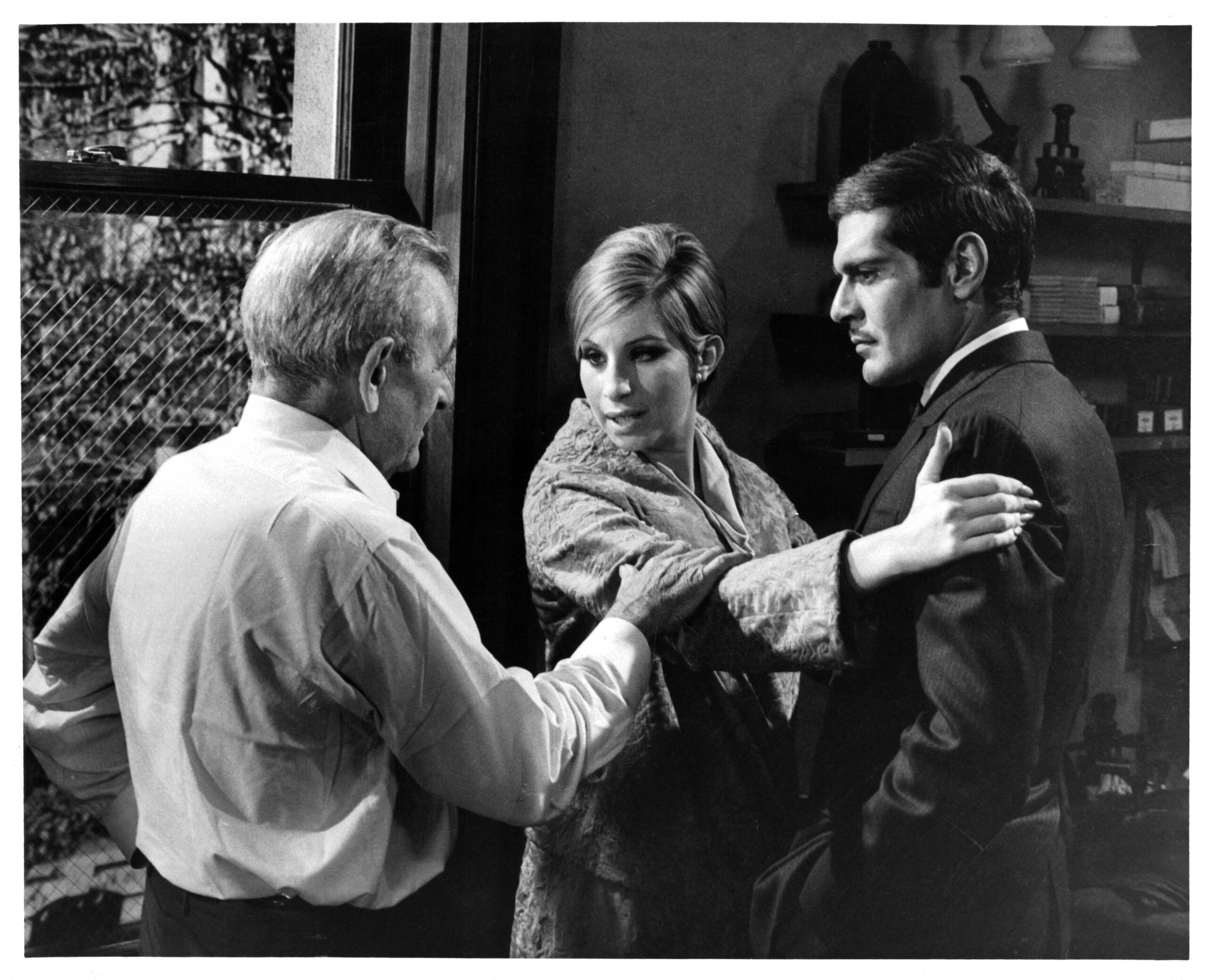Barbra Streisand with director William Wyler, left, and Omar Sharif on the set of the film “Funny Girl,” 1968. (Columbia Pictures/Getty Images)